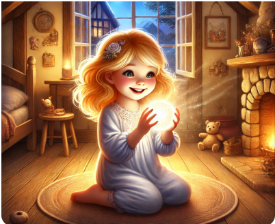 Un jour, une petite boule argentée fit irruption dans la chambre de Rose. Comment était-elle entrée ? Mystère. Elle avait roulé tranquillement autour de la chambre comme pour la visiter, s’était arrêtée quelques instants devant Nounours pour le saluer, puis après plusieurs rebonds élégants, elle était venue se nicher dans le creux de la petite main […]